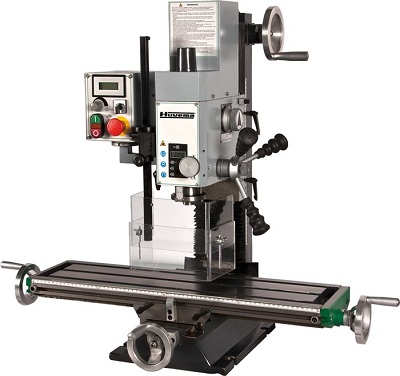 | Borr och fräsmaskin för lättare bearbetning. Ämnad för hobbybruk, ger bra ytfinish. Steglöst varvtal, justerbart bord och digital varvtalsräknare. Maskinen passar även för gängning. Huvudet kan lutas 90° åt vardera håll. | ![]() |