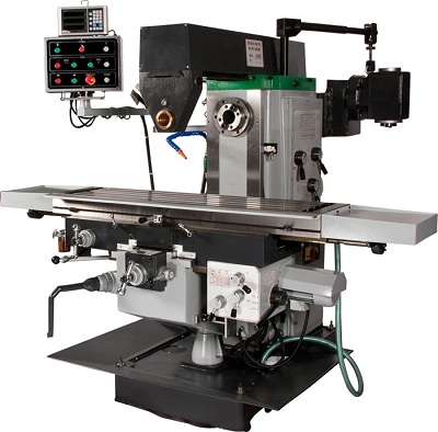 Robust fräsmaskin av knä/kolumntyp, ideal för tillverkning av enskilda delar, ombearbetning och reparationer. Maskinen har en massiv kropp med en väldigt robust knä-mekanism. X och Y axlarna är utrustade med snabbmatning, Z drivs upp/ner av en motor. Maskinens tunga bas består av räfflad finkornigt gjutjärn, dessutom har maskinen centralsmörjning så att svårtåtkomliga delar hålls smorda. Kontrollpanelen är lättanvänd och lättåtkomlig. Alla reglage är märkta med metriska mått och även mått i tum för att möjliggöra arbete i båda. |